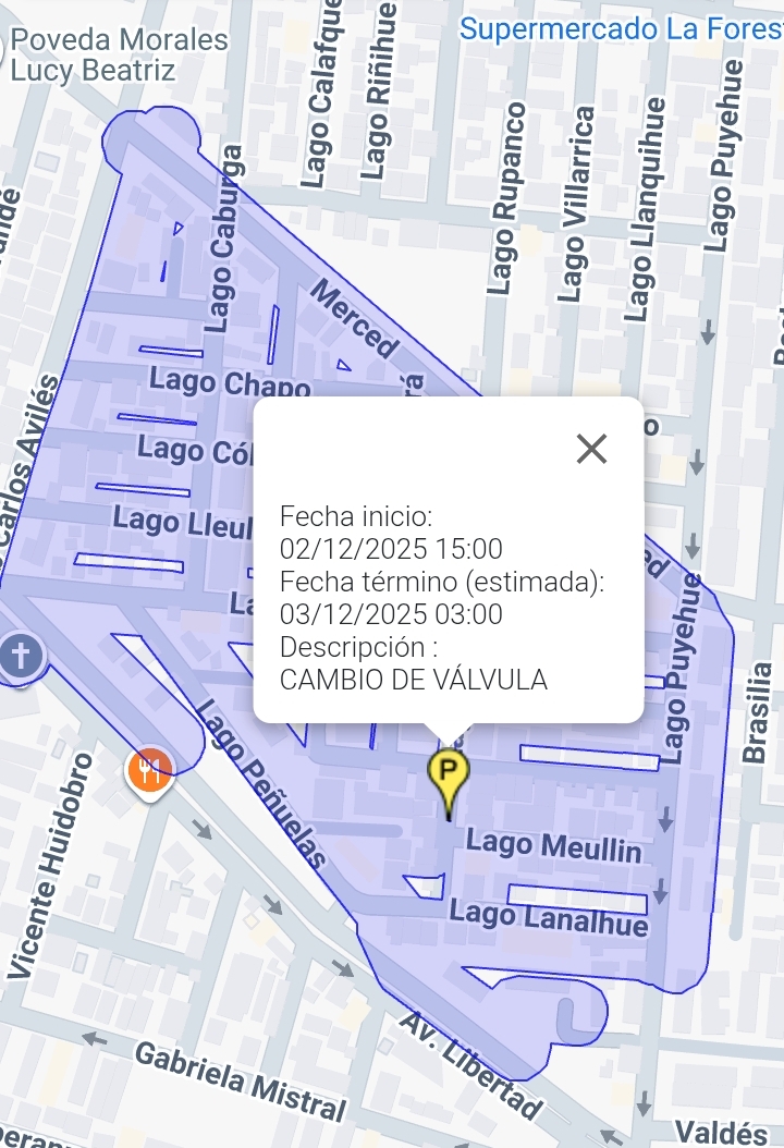El inicio de la interrupción del servicio está programado para las 15:00 horas de este martes 2 de diciembre, y su restablecimiento estimado se proyecta para las 03:00 horas del miércoles, completando así 12 horas de afectación.