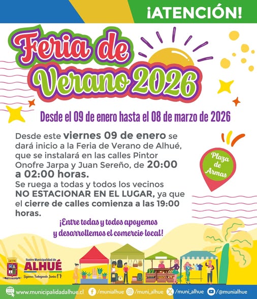 Comienza la Feria de Verano Alhué 2026 para impulsar el comercio local 09-Enero-202609-Enero-2026 Equipo RadioPrensa