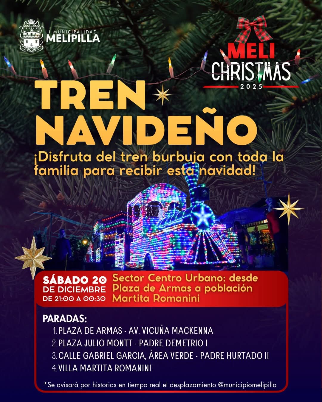 La Municipalidad de Melipilla extendió una invitación abierta a vecinos y vecinas para vivir una jornada marcada por la identidad local y la magia de la Navidad, este sábado 20 de diciembre, con actividades gratuitas pensadas para toda la familia.