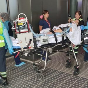 El ejercicio contempló el traslado simulado de tres pacientes, dos correspondientes a unidades críticas y uno de traslado básico, lo que permitió evaluar aspectos clave como el trayecto, los tiempos de desplazamiento, la preparación de los equipos clínicos y los protocolos de seguridad durante el proceso.