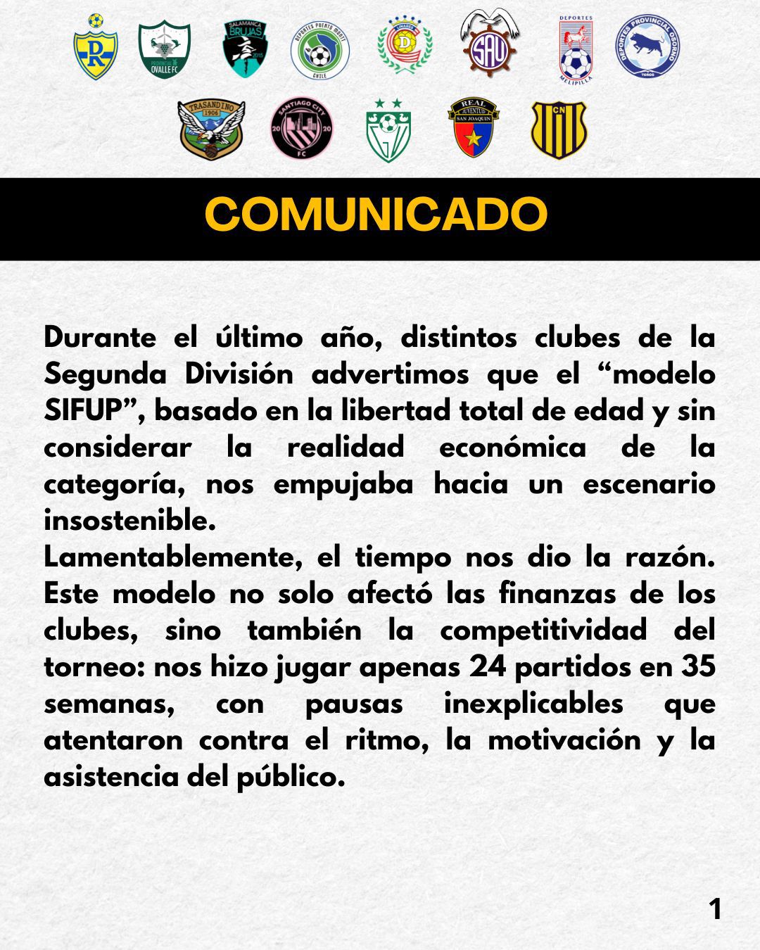 Los 13 clubes de la Segunda División Profesional, entre ellos Deportes Melipilla, emitieron un nuevo comunicado conjunto donde califican la situación de la categoría como “inviable”, alertando que la continuidad de varios equipos está en serio riesgo para 2026.